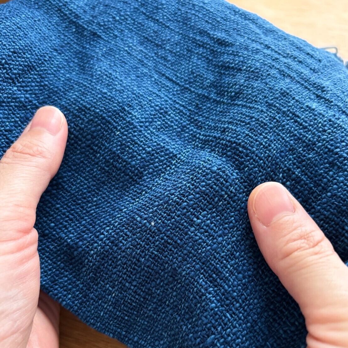 シンプルな組み合わせですが、手織りならではの糸の細い太いや色の濃淡、しっかりした厚みなど生地の味わいが引き立ち、とても素敵に仕上がりました。