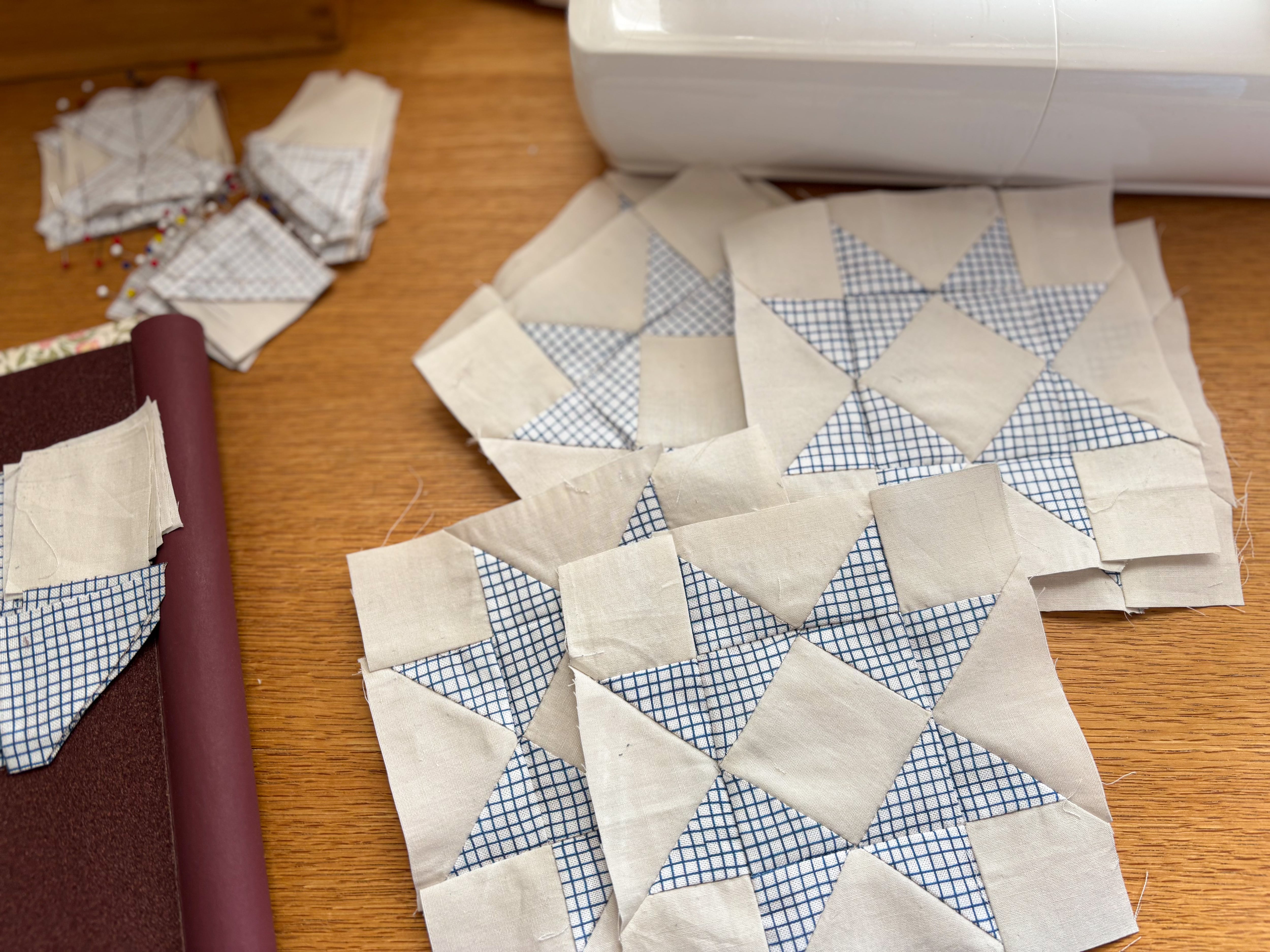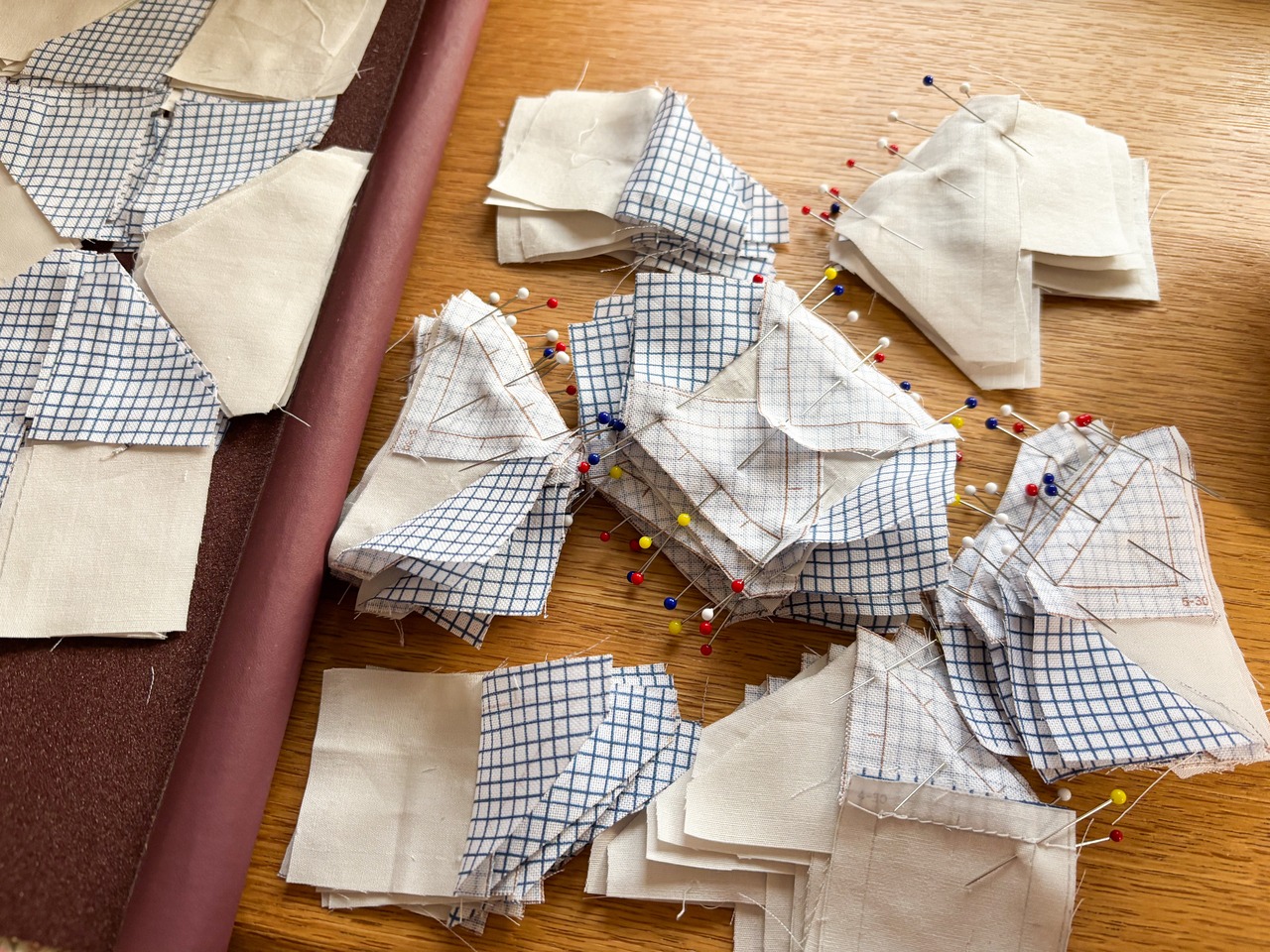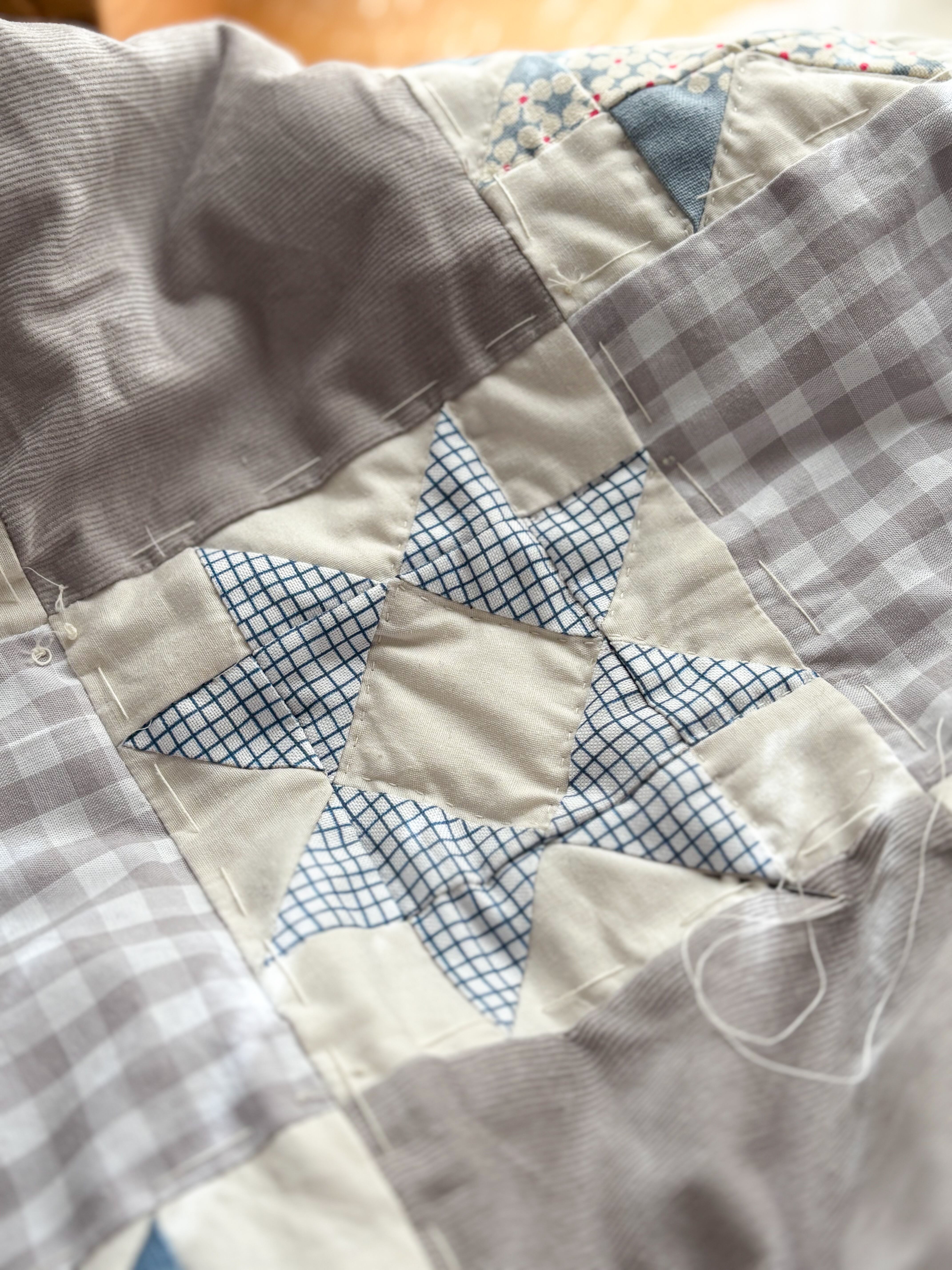 生地を三角形や四角形にひとつひとつ切り取り、丁寧に縫い合わせました。