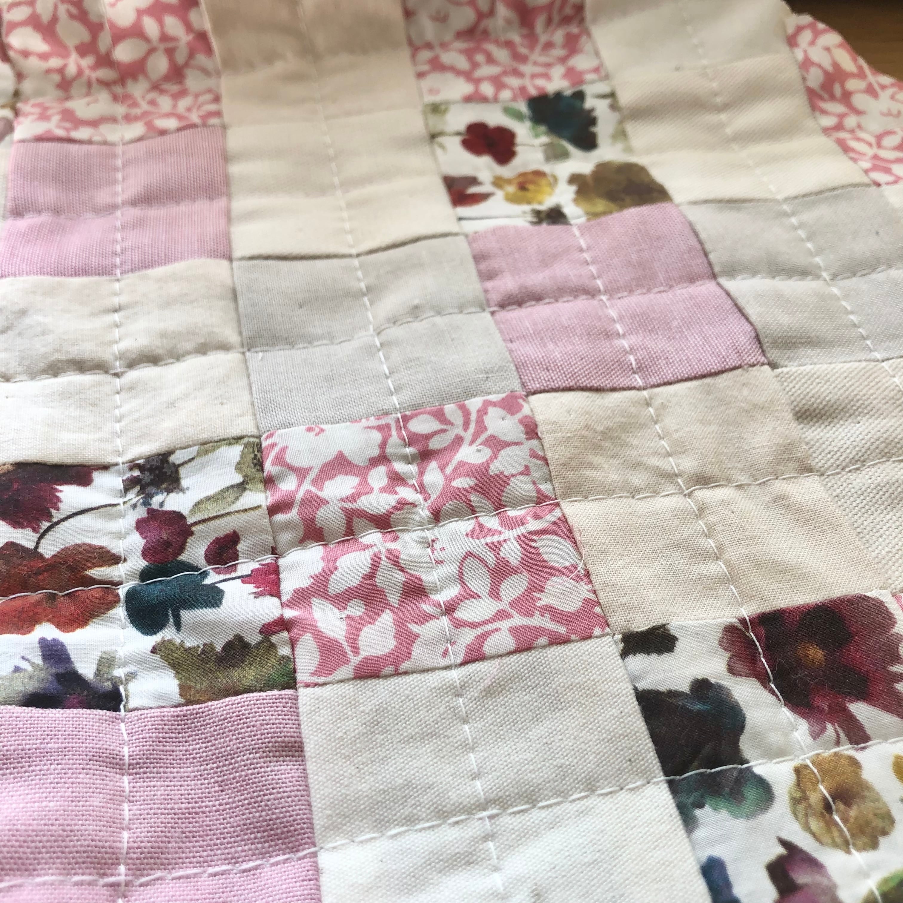 様々なご縁で集まった生地を繋いでキルトにしました。