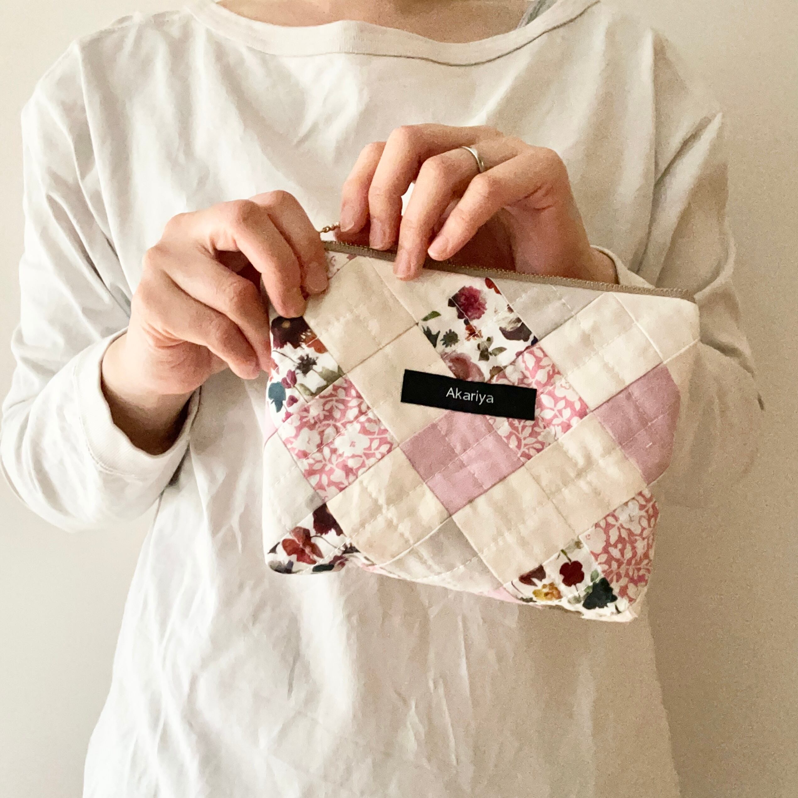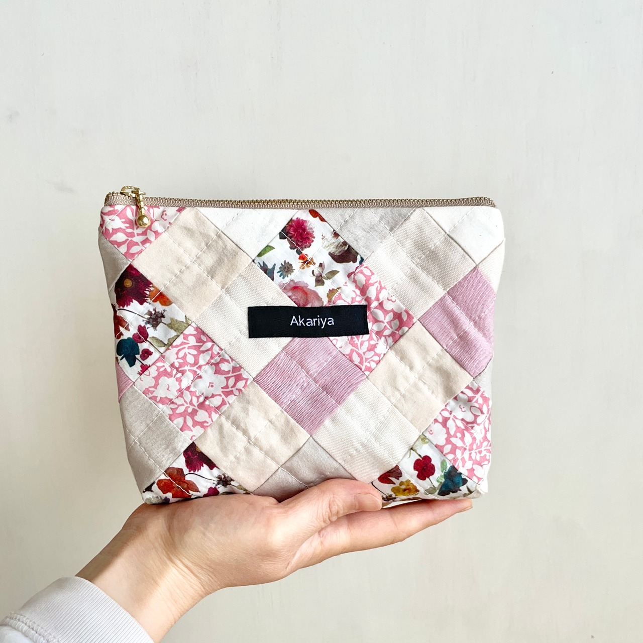 【一期一会】パッチワークキルトの一点ものポーチ*ときめく赤